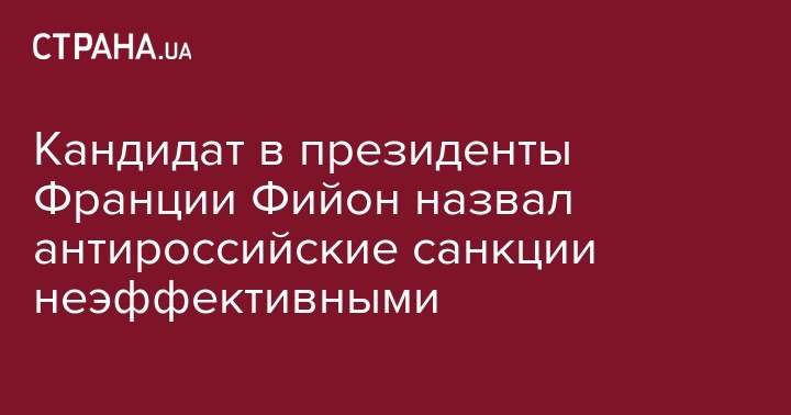 "Я убежден, что экономические санкции абсолютно неэффективны. Мы должны найти другой способ для диалога", - заявил Фийон.
