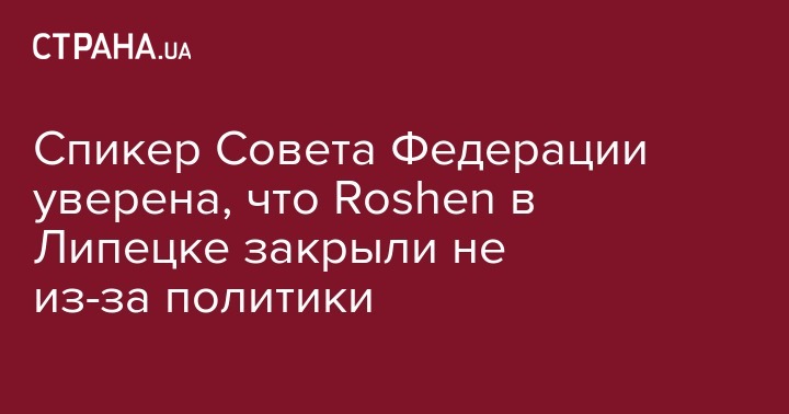 Фабрика Roshen в Липецке была закрыта точно не из-за политических мотивов. Об этом заявила спикер Совета Федерации Валентина Матвиенко, передает "Интерфакс-Украина".