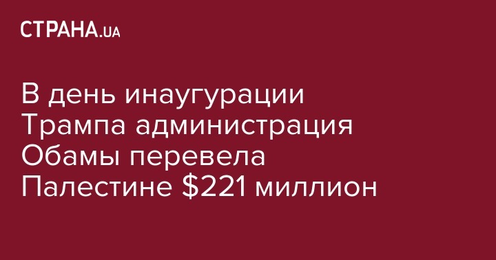 В день инаугурации Трампа администрация Обамы перевела Палестине $221 миллион