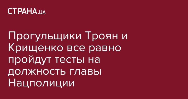 Ранее "Страна" сообщала, что Крищенко и Троян "прогуляли" конкурсное тестирование на должность главы Нацполиции. Также по словам участников конкурса ряд претендентов на должность главы Нацполиции получили тесты заранее.