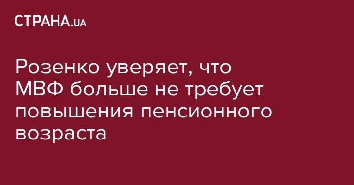 Ранее Розенко заявлял, что Украина не собирается повышать пенсионный возраст, даже если это требование МВФ.