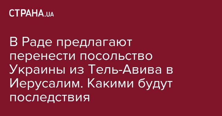 В Раде предлагают перенести посольство Украины из Тель-Авива в Иерусалим. Какими будут последствия