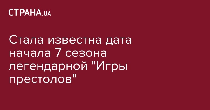 Премьера первой серии 7 сезона сериала "Игра престолов" состоится 25 июня. Об этом сообщил Dailytelegraf.