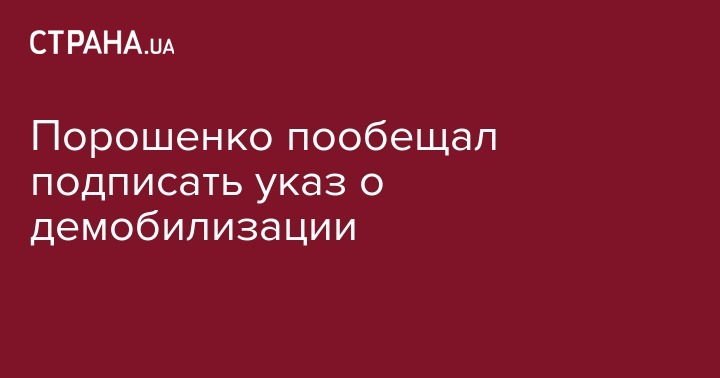 Президент Петр Порошенко подпишет указ о демобилизации. Об этом глава государства сообщил в своем Twitter.