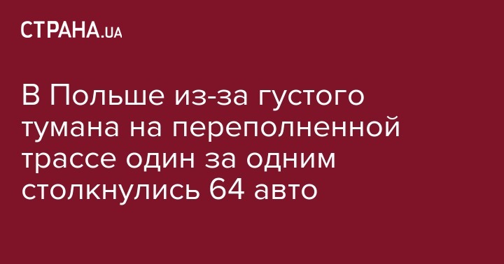 В четверг, 26 января в Польше произошло масштабное ДТП. После столкновения двух грузовиков, один в другой врезались еще 62 автомобиля. На дороге был сильный туман.