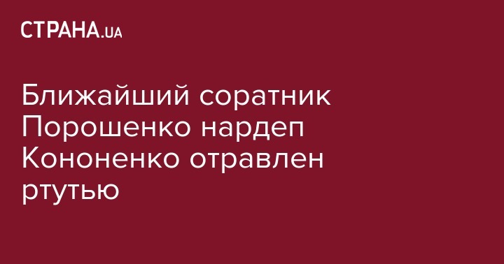 У народного депутата от фракции БПП, приближенного к президенту Порошенко, Игоря Кононенко обнаружили отравление ртутью. Об этом говорится в материале шеф-редактора LB.ua Сони Кошкиной.