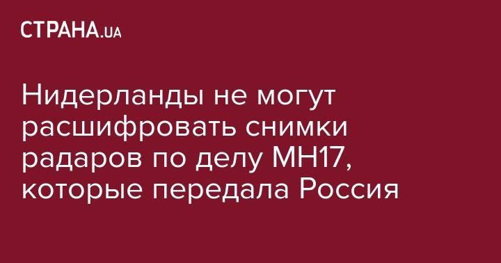 Нидерланды не могут расшифровать снимки радаров по делу MH17, которые передала Россия