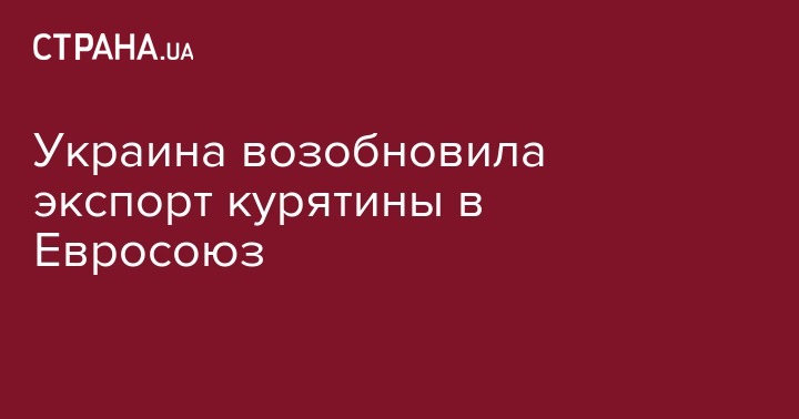 "Украина и Европейская комиссия договорились о возобновлении экспорта продукции птицеводства украинского производства в страны Евросоюза. По состоянию на сегодня поставка курятины на европейский рынок уже осуществляется", - говорится в сообщении.