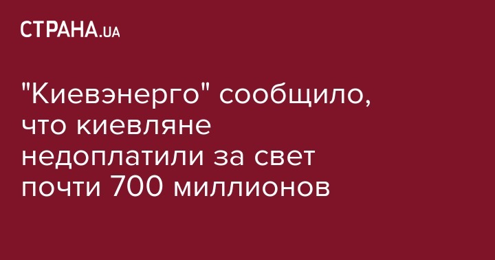 "Киевэнерго" сообщило, что киевляне недоплатили за свет почти 700 миллионов