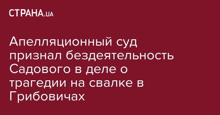 В понедельник, 30 января Львовский апелляционный административный суд признал противоправной бездеятельность мэра Львова Андрея Садового по делу о трагедии на свалке в Грибовичах. Также была признана противоправной бездеятельность и исполнительного комитета городского совета Львова.