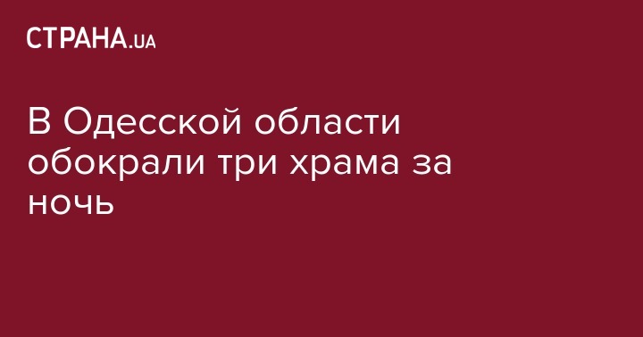 В ночь на 30 января 2017 года в Одесской области неизвестные ограбили три православных храма Московского патриархата. Об этом сообщает Одесская епархия УПЦ МП.