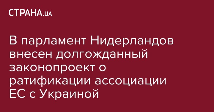 Законопроект о ратификации Соглашения об ассоциации ЕС с Украиной внесен и официально зарегистрирован в парламенте Нидерландов.
