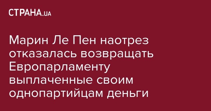 Лидер французского "Народного фронта" и кандидат пост президента Франции Марин Ле Пен заявила об отказе возвращать около €300 тысяч которые политик, согласно данным расследования, якобы, нелегально выплатила своим однопартийцам.