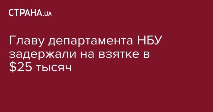 Сотрудники Генпрокуратуры и СБУ задержали руководителя Департамента платежных систем Национального банка Украины (НБУ) и троих его сообщников по подозрению в получении взятки в сумме 25 тысяч долларов. Об этом сообщает пресс-служба Генеральной прокуратуры.
