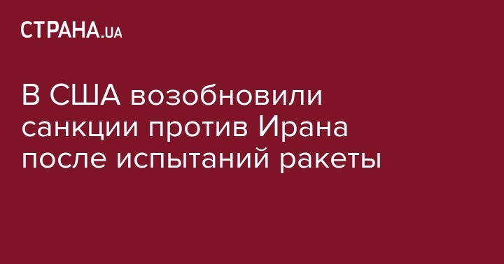 Министерство финансов США ввело санкций против Ирана в ответ на испытания страной новой баллистической ракеты.