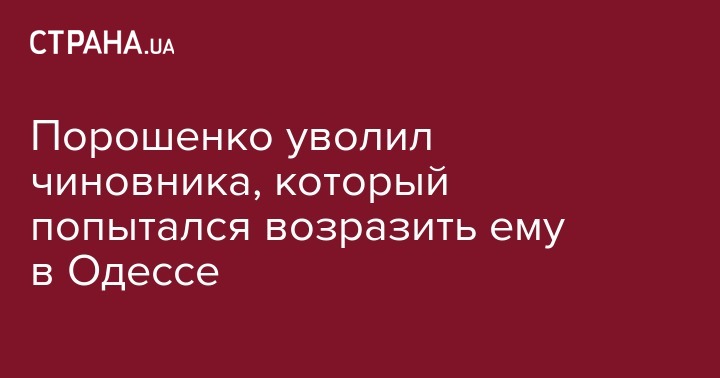 Как сообщала "Страна", одесский чиновник, которому нагрубил Порошенко, решил уволиться.