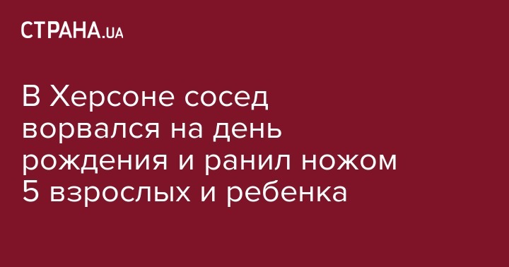 Вечером 3 февраля празднование день рождения в Херсоне закончилось плачевно. Во время праздника в квартиру в Шуменском микрорайоне ворвался мужчина, который ранил ножом 5 взрослых и ребенка. Об этом сообщает полиция Херсонской области.