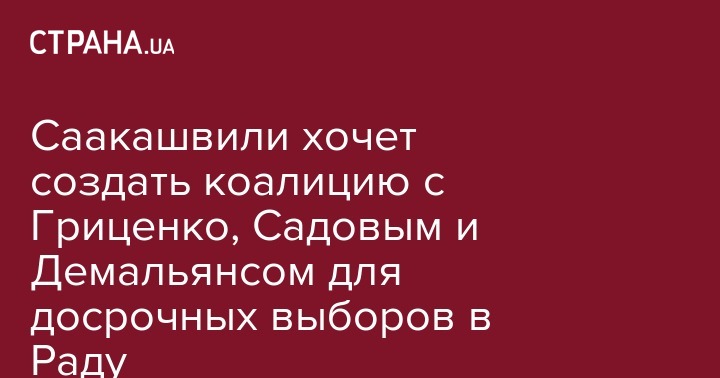 Экс-губернатор Одесской области Михаил Саакашвили встретился с представителями "Самопомощи" и "Демальянса" с целью создания широкой коалиции против нынешней власти, главной целью которой станут досрочные парламентские выборы. Об этом Саакашвили сообщил на своей странице в Facebook.