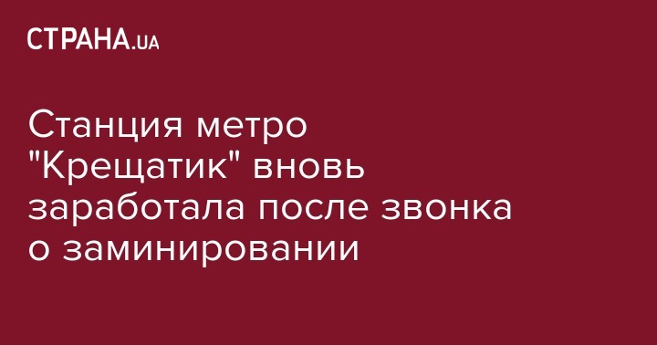 "Станция "Крещатик" работает в обычном режиме. Проверка проведена, взрывоопасных предметов не обнаружено", - говорится в официальном сообщении.