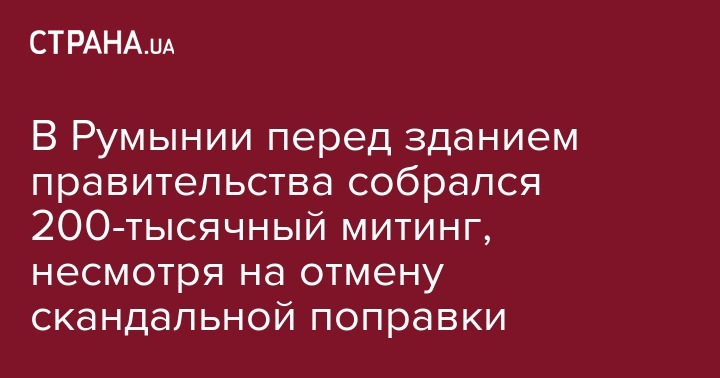 Сообщается, что в столице Румынии Бухаресте на площади Победы собрались около 200 тысяч человек. Они скандируют: "Мы не сдадимся" и одновременно зажигают фонарики на телефонах.