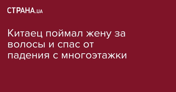 В китайской провинции Шэньси местный житель не дал своей жене упасть с многоэтажного здания и держал ее за волосы, пока не подоспела помощь. Удержать жену мужчине помогло то, что она зацепилась за выступающую из стены трубу, которая взяла на себя часть веса женщины. Об этом пишет газета South China Morning Post.