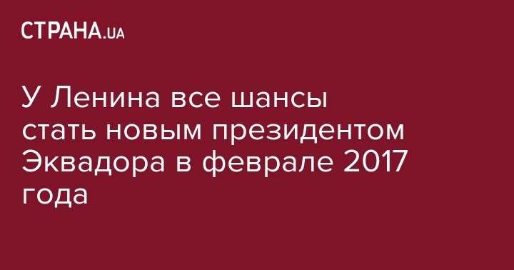 У Ленина все шансы стать новым президентом Эквадора в феврале 2017 года