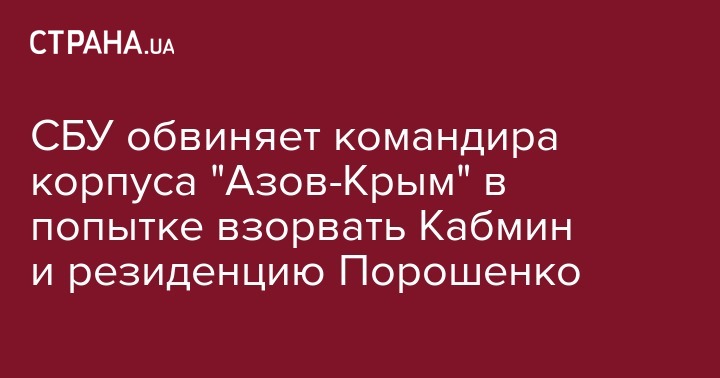 СБУ обвиняет командира корпуса "Азов-Крым" в попытке взорвать Кабмин и резиденцию Порошенко