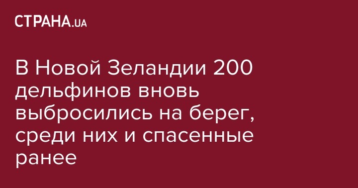 Департамент охраны окружающей среды Новой Зеландии сообщил, что на побережье вновь выбросились черные дельфины. Из 200 особей около половины являются млекопитающие из числа тех, которых удалось спасти за сутки до этого.