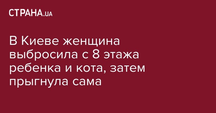 В Дарницком районе Киева на улице Срибнокильской, 12 сегодня, 12 февраля женщина приблизительно 27 лет выбросила из окна восьмого этажа своего ребенка и кота. После этого выпрыгнула сама.