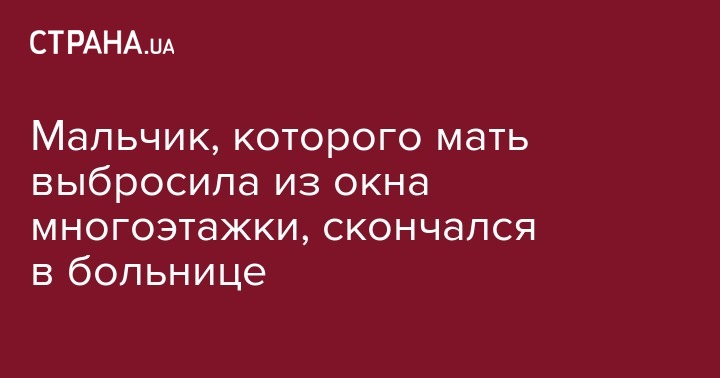 Сегодня, 12 февраля, трехлетний мальчик, которого мать с двумя кошками выбросила из окна квартиры, скончался в больнице. Об этом сообщил журналист Влад Антонов на своей странице в Facebook.