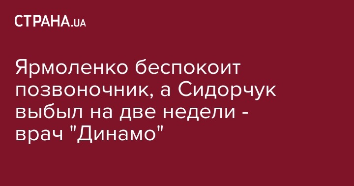Ярмоленко беспокоит позвоночник, а Сидорчук выбыл на две недели - врач "Динамо"