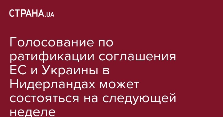 В агентстве сообщают, что предыдущая их новость оказалась некорректной, поскольку на самом деле голосование о ратификации Соглашения об ассоциации ЕС и Украины состоится в Голландии уже на следующей неделе.
