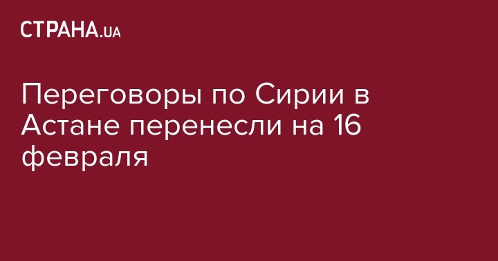 Заседание в рамках межсирийской встречи "Астана-2" переносится с 15 на 16 февраля. Об этом со ссылкой на источники сообщает "Интерфакс".