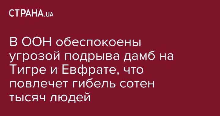 ООН выступила с предупреждением об угрозе прорыва дамб на реке Евфрат в Сирии и на реке Тигр в Ираке, что может привести к гибели сотен тысяч или даже миллионов людей. Об этом сообщает Reuters со ссылкой на письмо Организации.