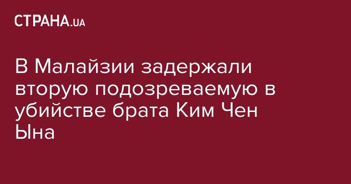 В Малайзии задержана вторая женщина, подозреваемая в убийстве брата главы КНДР Ким Чен Ына. Об этом сообщает агентство Bernama.