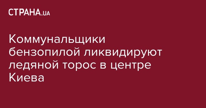 Коммунальщики бензопилой ликвидируют ледяной торос в центре Киева