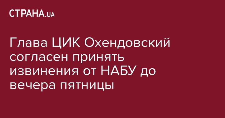 Глава ЦИК Охендовский согласен принять извинения от НАБУ до вечера пятницы