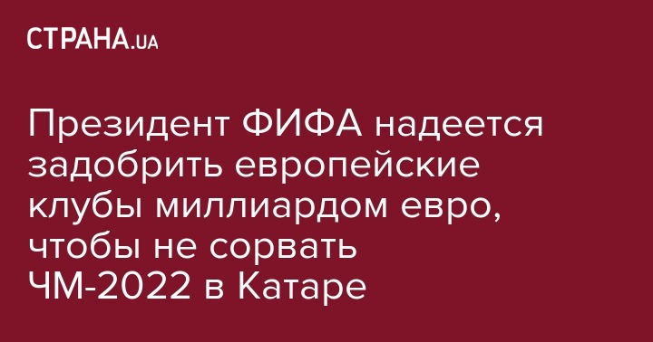 Президент ФИФА надеется задобрить европейские клубы миллиардом евро, чтобы не сорвать ЧМ-2022 в Катаре