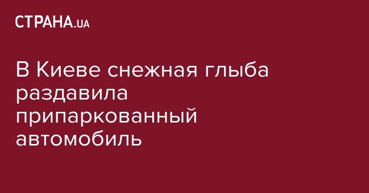 В Киеве снежная глыба раздавила припаркованный автомобиль
