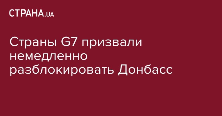 Страны "Большой семерки" призвали к немедленному снятию блокады на Донбассе. Об этом сообщает УНИАН со ссылкой на заявление послов G7.