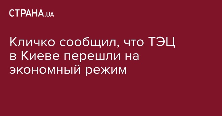 Мэр столицы Виталий Кличко поручил перевести ТЭЦ на экономный режим работы из-за сложной ситуации в энергетике. Об этом он заявил в эфире телеканала "Киев", сообщает пресс-служба городского головы.