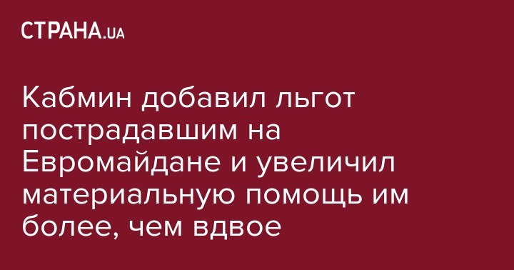 Одноразовая материальная помощь для лиц, который пострадали на Евромайдане, увеличена в 2,3 раза.