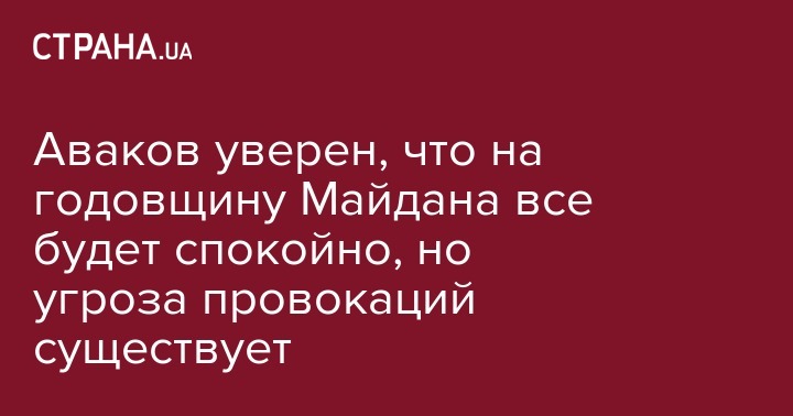 "Я не думаю, что нас ждут какие-то гиперпотрясения в связи с массовыми акциями, приуроченными к годовщине Майдана. Важно не допустить провокаций. Если провокаций мы не допустим, если нам не подбросят какую-нибудь "тему", то, уверен, что все будет нормально", - сказал Аваков.