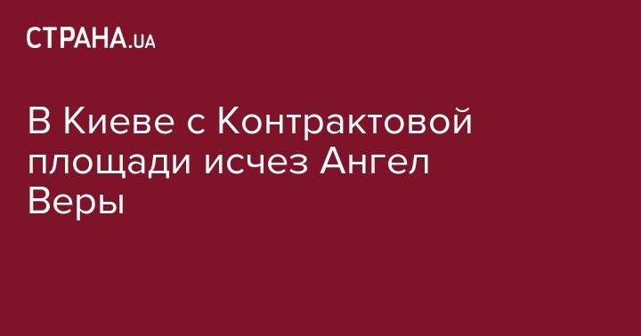 19 февраля с Контрактовой площади в Киеве исчезла скульптура Ангела Веры, установленная в декабре прошлого года в рамках проекта "Ангелы наций, с верой в Украину". Об этом написала общественный активист Марта Винницкая на своей странице в Facebook.