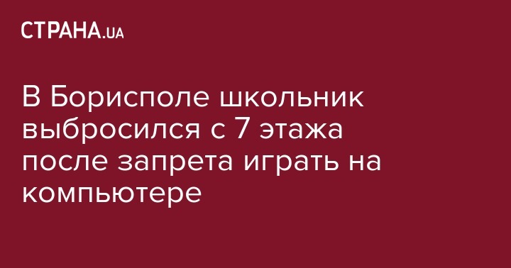 19 февраля в Борисполе Киевской области 12-летний школьник выбросился из окна седьмого этажа после ссоры с родителями. Об этом сообщает полиция Киевской области.