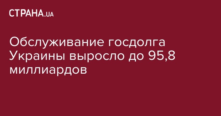 Обслуживание госдолга Украины выросло до 95,8 миллиардов