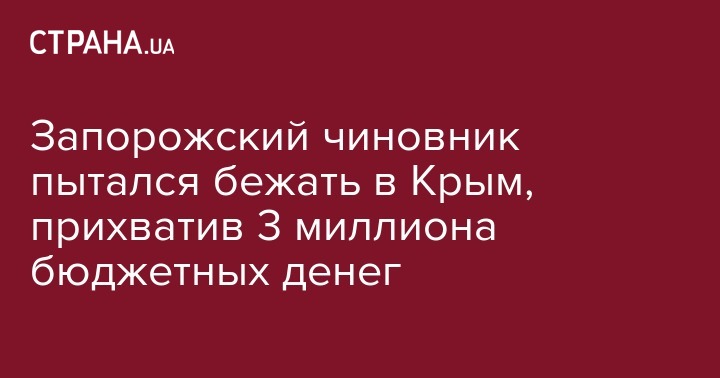 Запорожский чиновник пытался бежать в Крым, прихватив 3 миллиона бюджетных денег