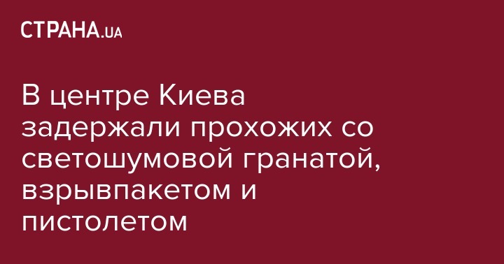 В центре Киева сотрудники полиции во время проверки изъяли у прохожих светошумовую гранату, предмет, похожий на взрывной пакет, и стартовый пистолет с явными признаками переделки под боевое оружие.
