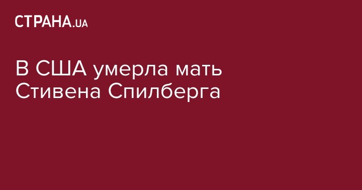 В Лос-Анджелесе умерла мать знаменитого голливудского режиссера Стивена Спилберга - Лия Адлер. Об этом сообщает издание Hollywood reporter.
