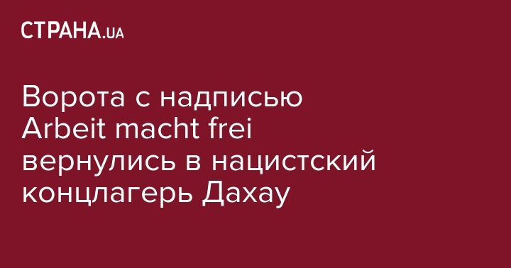Ворота концлагеря Дахау, расположенного неподалеку от Мюнхена, с надписью Arbeit macht frei ("Труд делает свободным"), которые были украдены два года назад, вернули мемориальному комплексу. Об этом сообщает Bayerischer Rundfunk.